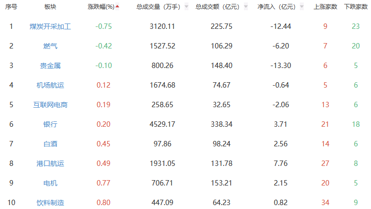 A股市場板塊漲跌幅排行