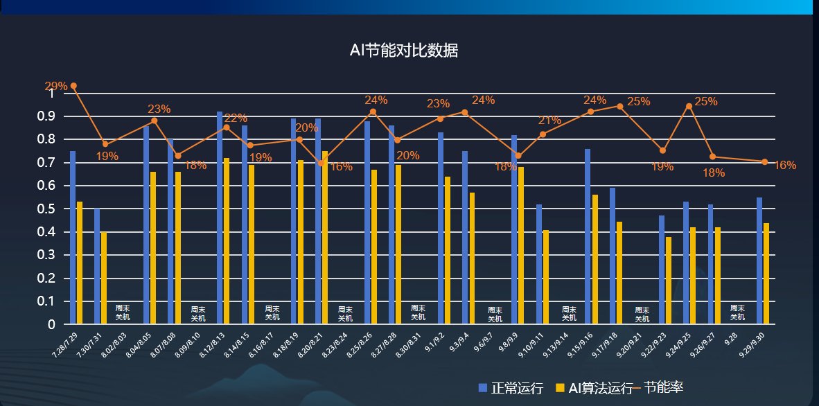 在杭州南湖未來(lái)科技園,僅AI算法節(jié)能就達(dá)到21.3%。該項(xiàng)目集商業(yè)和辦公于一體,各個(gè)區(qū)域需求不同,上下班時(shí)間也不一致。傳統(tǒng)操作模式一開全開,中途人工調(diào)節(jié)相對(duì)滯后,無(wú)法實(shí)時(shí)跟蹤負(fù)荷變化,導(dǎo)致每月空調(diào)電費(fèi)居高不下。