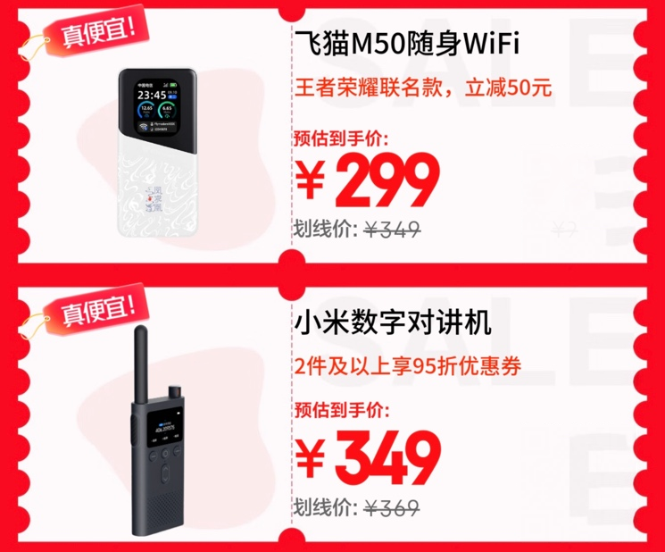 移動(dòng)辦公與團(tuán)隊(duì)協(xié)作場(chǎng)景下,設(shè)備選擇更需兼顧便捷與穩(wěn)定。飛貓M50王者榮耀聯(lián)名款5G隨身WiFi作為2025旗艦新款,立減50元后249元到手,支持三網(wǎng)免插卡與通用流量,外出差旅或臨時(shí)辦公的網(wǎng)絡(luò)需求輕松解決。小米數(shù)字對(duì)講機(jī)則以輕薄機(jī)身與大功率遠(yuǎn)距通話能力,成為團(tuán)隊(duì)?wèi)敉庾鳂I(yè)或跨區(qū)域溝通的實(shí)用工具,2件及以上還能享95折優(yōu)惠。