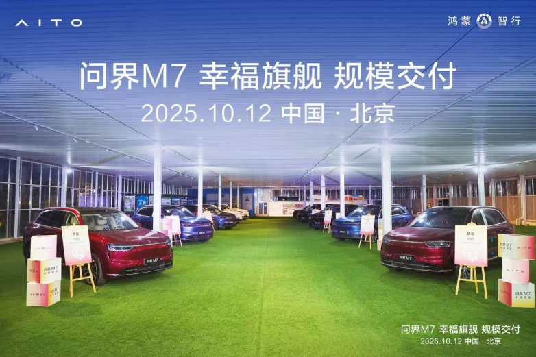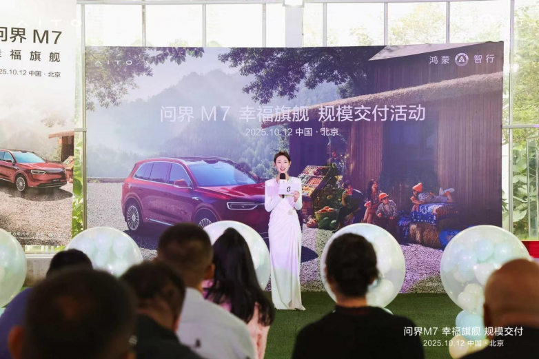 2025年10月12日,問界M7北京規(guī)模交付儀式在北京農(nóng)科院園藝創(chuàng)新中心隆重舉行。問界M7北京的新車主們親臨現(xiàn)場,在秋色宜人的京城共同見證了這一重要時刻,標(biāo)志著問界M7在北京市場的全面啟航。