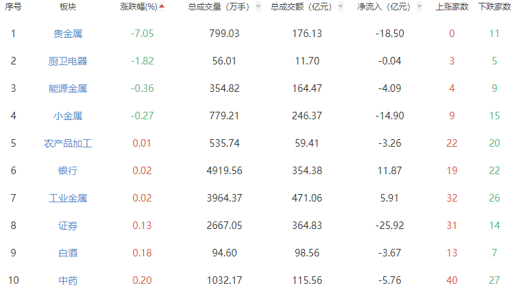 板塊方面,煤炭開采加工、燃氣、電機等漲幅居前,貴金屬、廚衛(wèi)電器、能源金屬等跌幅居前。