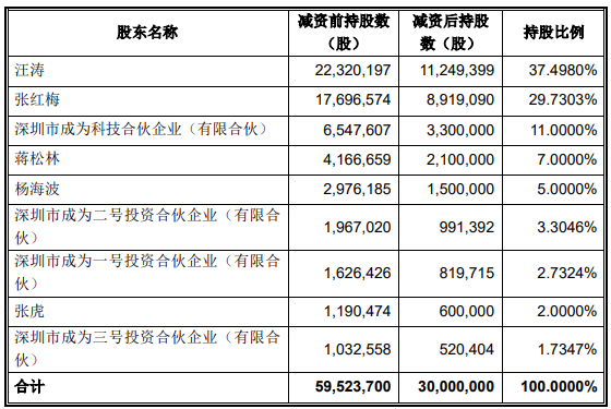 成為信息于2025年9月16日召開臨時(shí)股東大會(huì),審議通過了《關(guān)于減少公司注冊(cè)資本并修改公司章程的議案》,成為信息擬將注冊(cè)資本由5,952.37萬元減至3,000萬元,各股東為同比例減資。截至預(yù)案簽署日,該事項(xiàng)尚處于減資公示階段,公告期限為2025年09月23日至2025年11月06日,減資完成前后成為信息的主要股東情況如下: