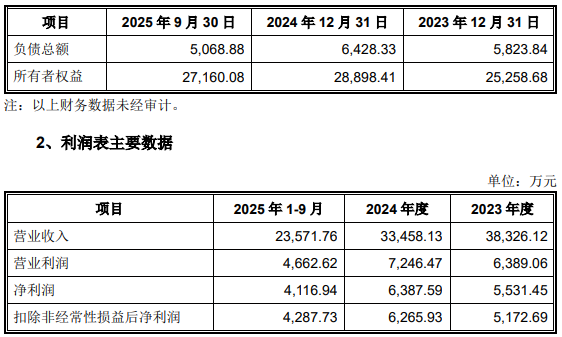 2023年度、2024年度、2025年1至9月,朗國(guó)科技營(yíng)業(yè)收入分別為59,800.52萬元、67,381.92萬元、62,763.30萬元,凈利潤(rùn)分別為8,068.75萬元、9,693.98萬元、2,574.34萬元,扣除非經(jīng)常性損益后凈利潤(rùn)分別為7,369.42萬元、9,241.26萬元、9,495.58萬元。