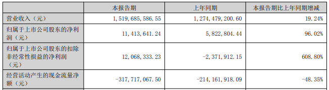 2025年上半年,億道信息實(shí)現(xiàn)營(yíng)業(yè)收入15.20億元,同比增長(zhǎng)19.24%;歸屬于上市公司股東的凈利潤(rùn)為1141.36萬元,同比增長(zhǎng)96.02%;歸屬于上市公司股東的扣除非經(jīng)常性損益的凈利潤(rùn)為1206.83萬元,上年同期為-237.19萬元;經(jīng)營(yíng)活動(dòng)產(chǎn)生的現(xiàn)金流量?jī)纛~為-3.18億元,上年同期為-2.14億元。
