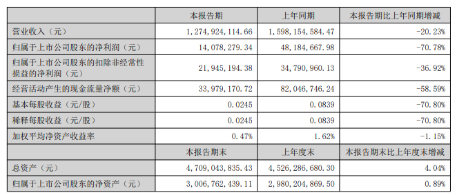 經緯輝開2025年半年度報告顯示,2025年上半年,公司實現營業(yè)收入12.75億元,同比下滑20.23%;歸屬于上市公司股東的凈利潤1407.83萬元,去年同期為4818.47萬元;歸屬于上市公司股東的扣除非經常性損益的凈利潤2194.52萬元,去年同期為3479.10萬元;經營活動產生的現金流量凈額為3397.92萬元。