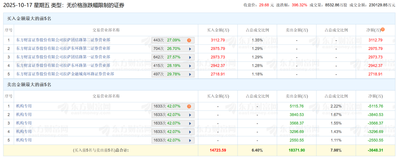 道生天合龍虎榜:機(jī)構(gòu)包攬賣出前5 凈賣出共1.84億元