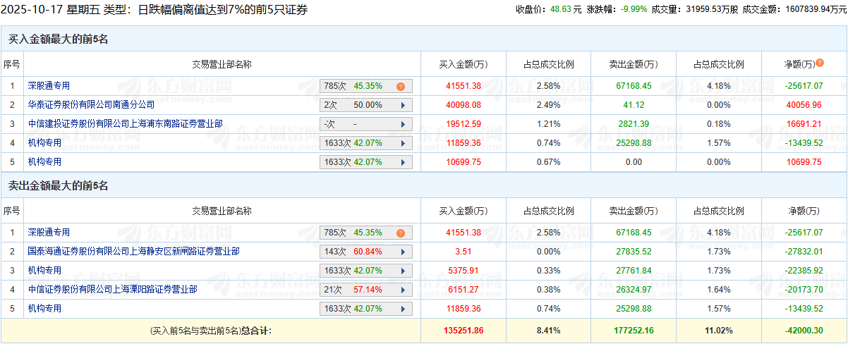 中國經(jīng)濟(jì)網(wǎng)北京10月17日訊 中興通訊(000063.SZ)今日跌停,收報48.63元,跌幅9.99%。
