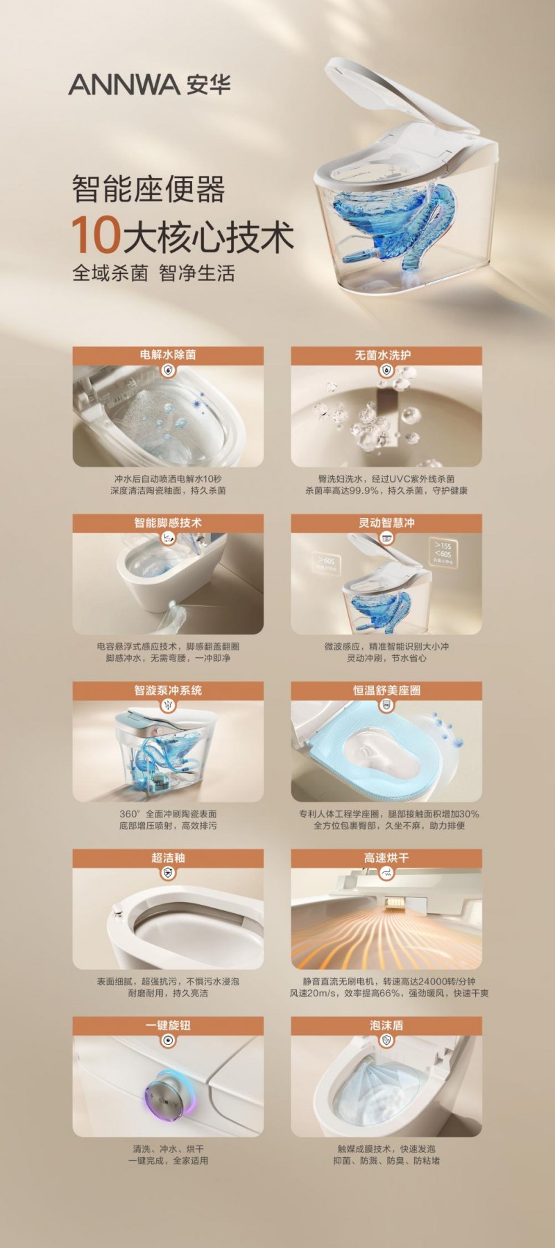 作為行業(yè) “年輕態(tài)高端衛(wèi)浴空間品牌”,安華始終以用戶為中心。此次斬獲 “智能坐便器創(chuàng)新金獎” 的創(chuàng)新實力,更體現(xiàn)在安華 2025 年全新推出的三大明星產(chǎn)品中,每一款都精準擊中用戶需求痛點。