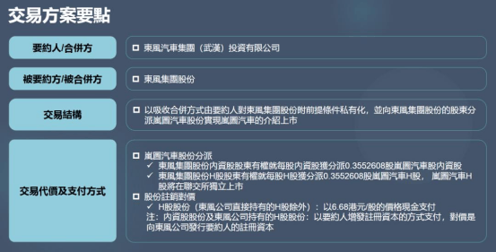 為打破這一困局,東風(fēng)設(shè)計(jì)了一套復(fù)雜的交易方案:一方面,推動(dòng)?xùn)|風(fēng)集團(tuán)股份私有化退市;另一方面,將其持有的嵐圖汽車79.67%股權(quán)按比例分配給原有股東,使嵐圖以介紹方式直接登陸港交所。最終,原東風(fēng)股東將自動(dòng)成為嵐圖股東,實(shí)現(xiàn)上市主體的平穩(wěn)切換。