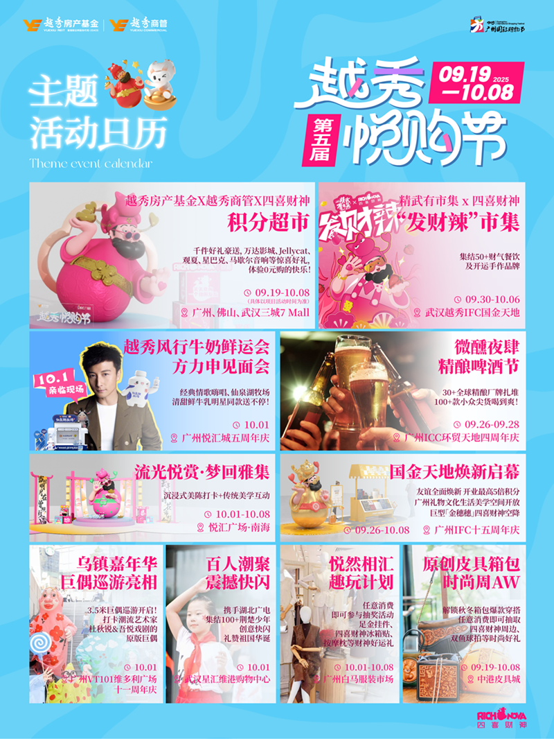 作為扎根廣州的國(guó)企商業(yè)運(yùn)營(yíng)商,越秀商管的自造節(jié)始終與城市發(fā)展同頻。從“悅潮節(jié)”引領(lǐng)文化潮流,到“悅購(gòu)節(jié)”激活消費(fèi)潛力,再到即將啟幕的“悅食節(jié)”傳承飲食文化,越秀商管的自造節(jié)矩陣已形成品牌化效應(yīng)。這種造節(jié)能力既讓企業(yè)在城市消費(fèi)生態(tài)中站穩(wěn)C位,更以“政府搭臺(tái)、市場(chǎng)唱戲”的實(shí)踐,豐富了“羊城消費(fèi)新八景”的落地路徑,為廣州國(guó)際消費(fèi)中心城市建設(shè)注入持續(xù)動(dòng)能。