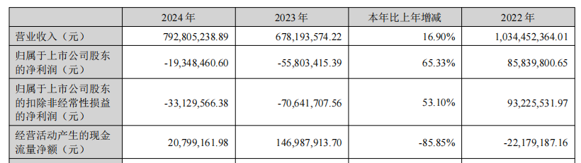2023年、2024年,公司實現(xiàn)歸屬于上市公司股東的凈利潤分別為-5580.34萬元、-1934.85萬元。