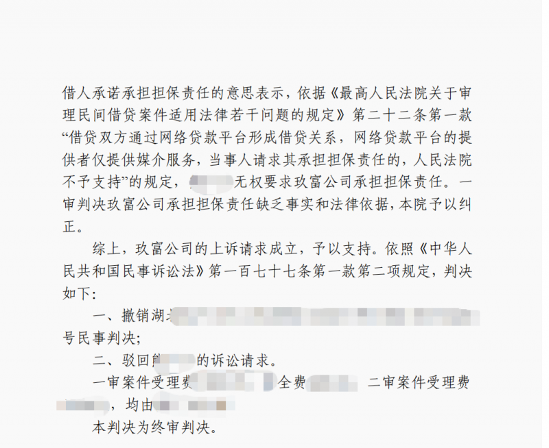 湖北中院宣判出借人與玖富非民間借貸關(guān)系,玖富系信息中介不擔責
