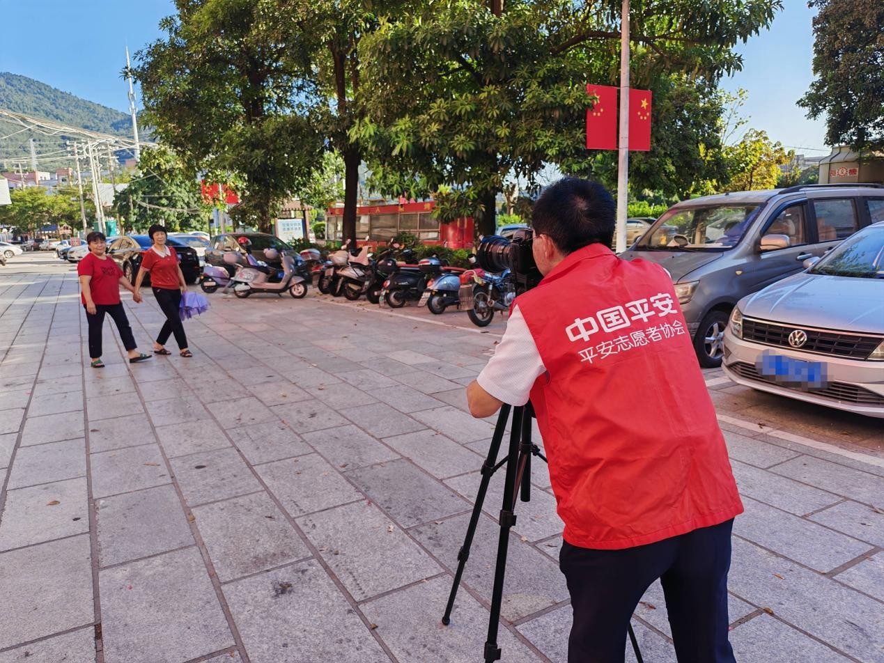 在滿山紅村的文化廣場上,志愿者們支起三腳架、調(diào)試好相機(jī),紅色的“中國平安平安志愿者協(xié)會”馬甲在陽光下格外醒目。從相攜散步的老友,到古厝前好奇張望的孩童,再到廠房外幸福依偎的四口之家……志愿者們穿梭在村落的各個角落,為不同場景下的村民們拍攝團(tuán)圓照。