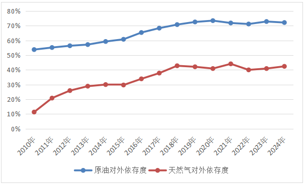 3000億千瓦時年發(fā)電量,將有效提高水能在我國能源結(jié)構中占比,且減少能源對外依存度。中國原油和天然氣對外依賴較高,2024年雖有降低,但能源安全問題仍十分嚴峻。