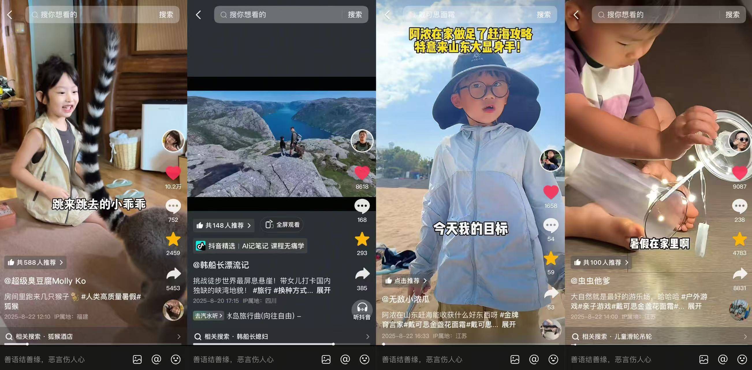未來,#人類高質量暑假 仍將作為抖音長線暑期IP,持續(xù)探索“內容+場景+商業(yè)”的更多可能,讓“高質量暑假”成為每年的“親子約定”,讓每年暑假都成為家長與孩子的專屬記憶時刻,也讓抖音成為“親子高質量生活”的核心承載平臺。
