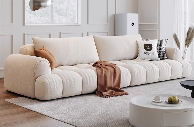 當(dāng)然,選沙發(fā)也有大學(xué)問。我推薦的這款冬熊法式輕奢沙發(fā)以“云朵美學(xué)”為靈感,用700g/㎡的高密度貓爪牛奶絨面料,觸感如羊絨般細(xì)膩,久坐也不易塌陷,讓每一次落座都像是被云朵包裹。
