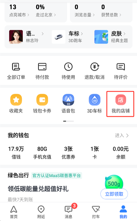 2、點(diǎn)擊【我的】,在個(gè)人中心中找到【我的店鋪】;