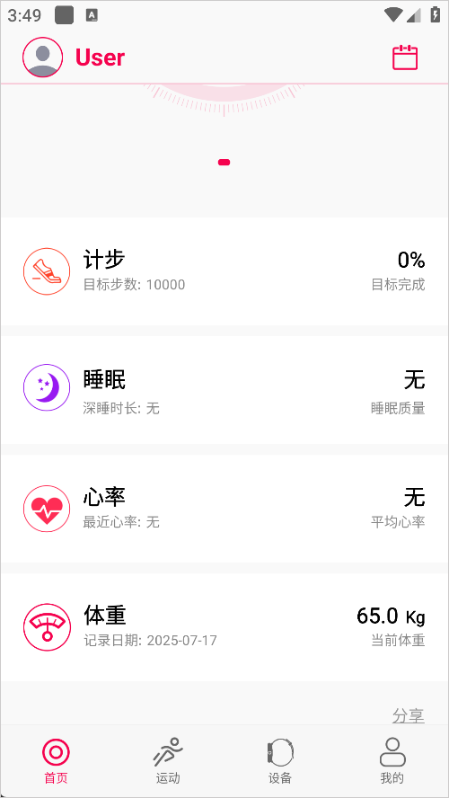 5.設(shè)備匹配成功后你就可以在手機(jī)上時(shí)時(shí)看到自己的健康信息以及運(yùn)動(dòng)數(shù)據(jù)。