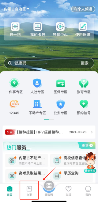 1.打開并登錄“蒙速辦”移動端,進入【辦事】頁面;