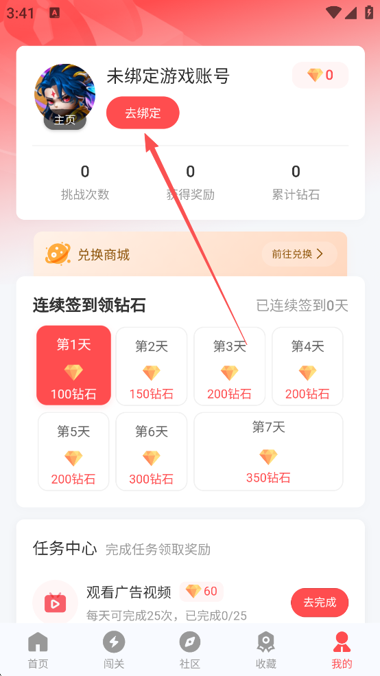 2、綁定好之后就可以參加首頁的皮膚挑戰(zhàn)了