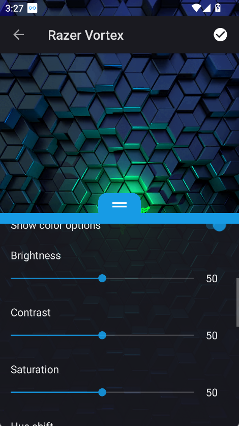 2、進(jìn)入壁紙的動態(tài)預(yù)覽頁面后,點(diǎn)擊下方按鈕,即可對畫面進(jìn)行調(diào)整,例如畫面翻轉(zhuǎn)、動畫速度、亮度、對比度以及色彩飽和度等參數(shù)。