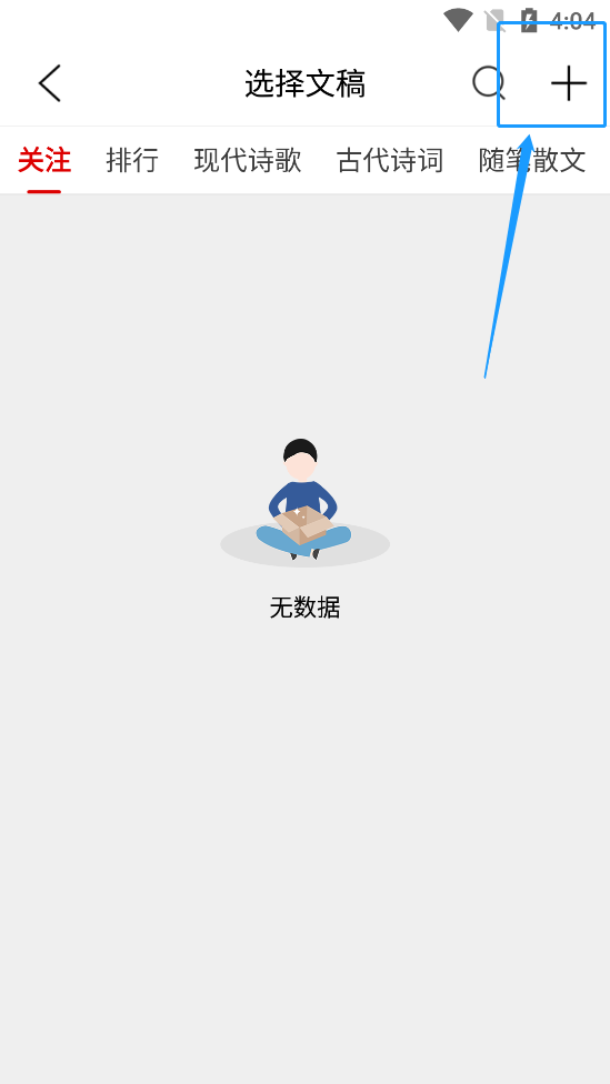 3、跳轉(zhuǎn)至文稿頁面后,點擊“+”號