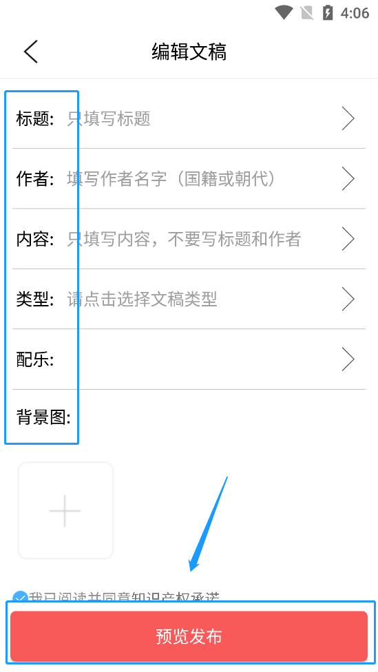 4、依次填寫如下內(nèi)容,填好之后點擊預(yù)覽發(fā)布