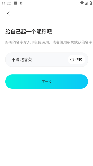 4、之后給自己的賬號去一個名稱,可以點(diǎn)擊切換讓系統(tǒng)隨機(jī)選擇,也能自己命名;