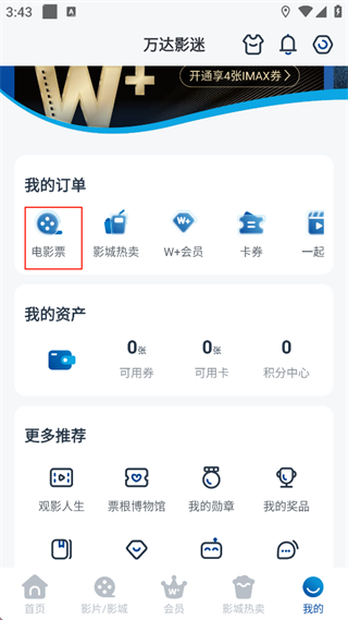 1、在本站下載安裝軟件,登錄軟件即可字首頁(yè)看到當(dāng)前正在熱映的電影,還有卡券禮包、最新活動(dòng)、w+專(zhuān)區(qū)等功能;