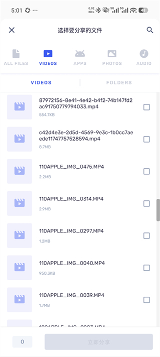 4、點(diǎn)擊“發(fā)送”后,進(jìn)入文件選擇勾選要傳輸?shù)囊曨l文件。