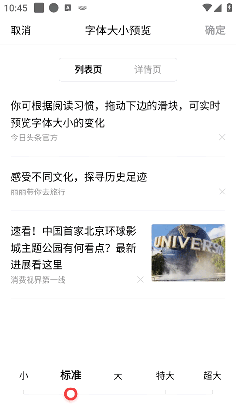 3、進(jìn)入大字模式或者字體大小,就可以調(diào)整列表頁(yè)、詳情頁(yè)等字號(hào)顯示,小、標(biāo)準(zhǔn)、大、特大、超大等選擇。