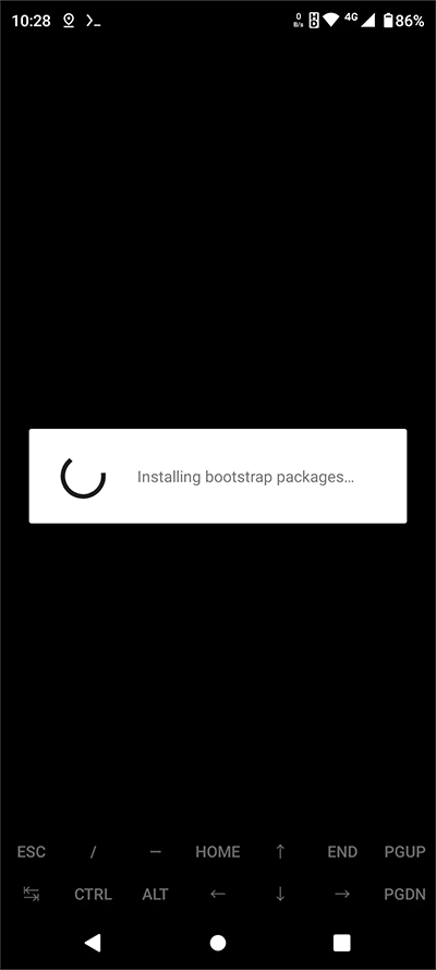 初次使用 Termux 需等待 Installing bootstrap packages (安裝引導(dǎo)程序包)完成。