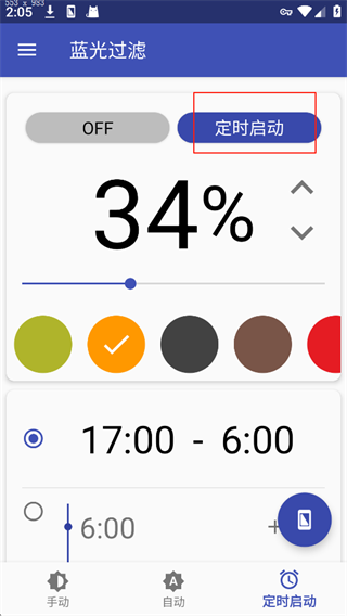 6、也可以根據(jù)日常的使用時段,設定開啟定時啟動服務,到點就會自動改變屏幕顏色。