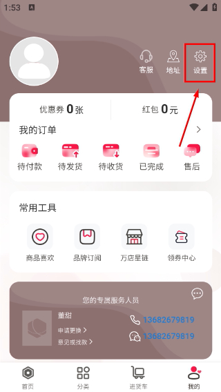 1、進入個人中心頁面后,點擊右上角【設置】圖標,進入系統(tǒng)設置操作界面。