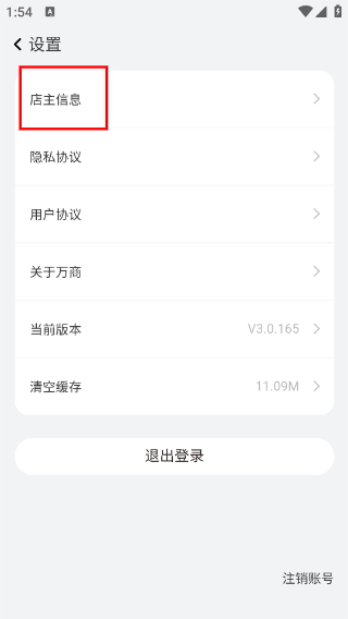 2、在設置頁面中,點擊【店主信息】選項,進入店鋪相關信息的查看頁面。