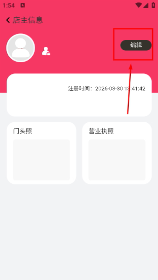 3、在店主信息頁面,點擊右上角【編輯】按鈕,進入店鋪資料的編輯頁面。