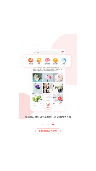 2、往右滑動(dòng)即可看到開(kāi)啟你的手作之旅,點(diǎn)擊即可。