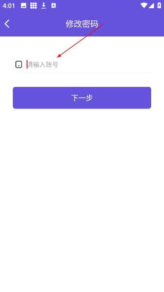 4、在修改密碼頁(yè),在【請(qǐng)輸入賬號(hào)】欄填寫(xiě)賬號(hào)信息,點(diǎn)擊【下一步】,繼續(xù)完成密碼修改。