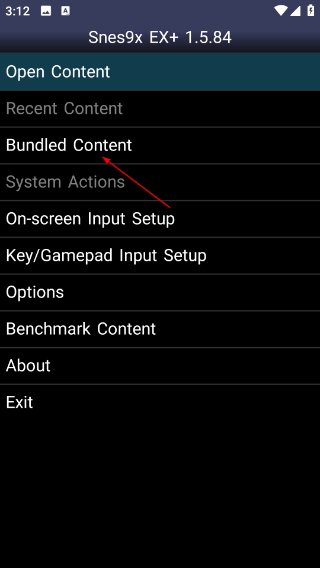 1、進入模擬器主菜單后,點擊【Bundled-Content】選項,查看內(nèi)置的游戲內(nèi)容列表。