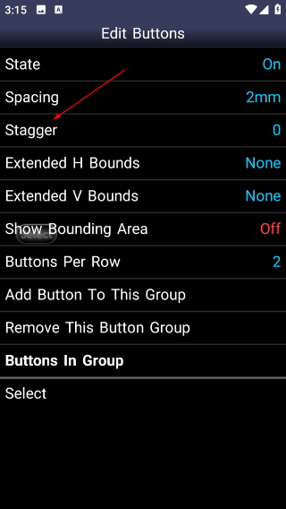 3、在編輯頁點擊【Stagger】選項,打開交錯參數(shù)選擇彈窗,可調(diào)整按鍵垂直偏移。