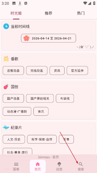 1、進入首頁,點擊底部導(dǎo)航欄的【搜索】按鈕,進入搜索界面。