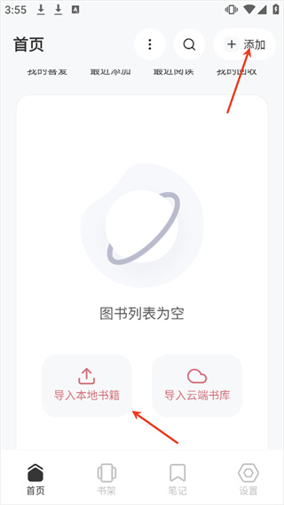 2、進(jìn)來(lái)點(diǎn)右上角加號(hào),就能導(dǎo)書(shū),第一次用中間也會(huì)有導(dǎo)入入口,點(diǎn)一下就行。