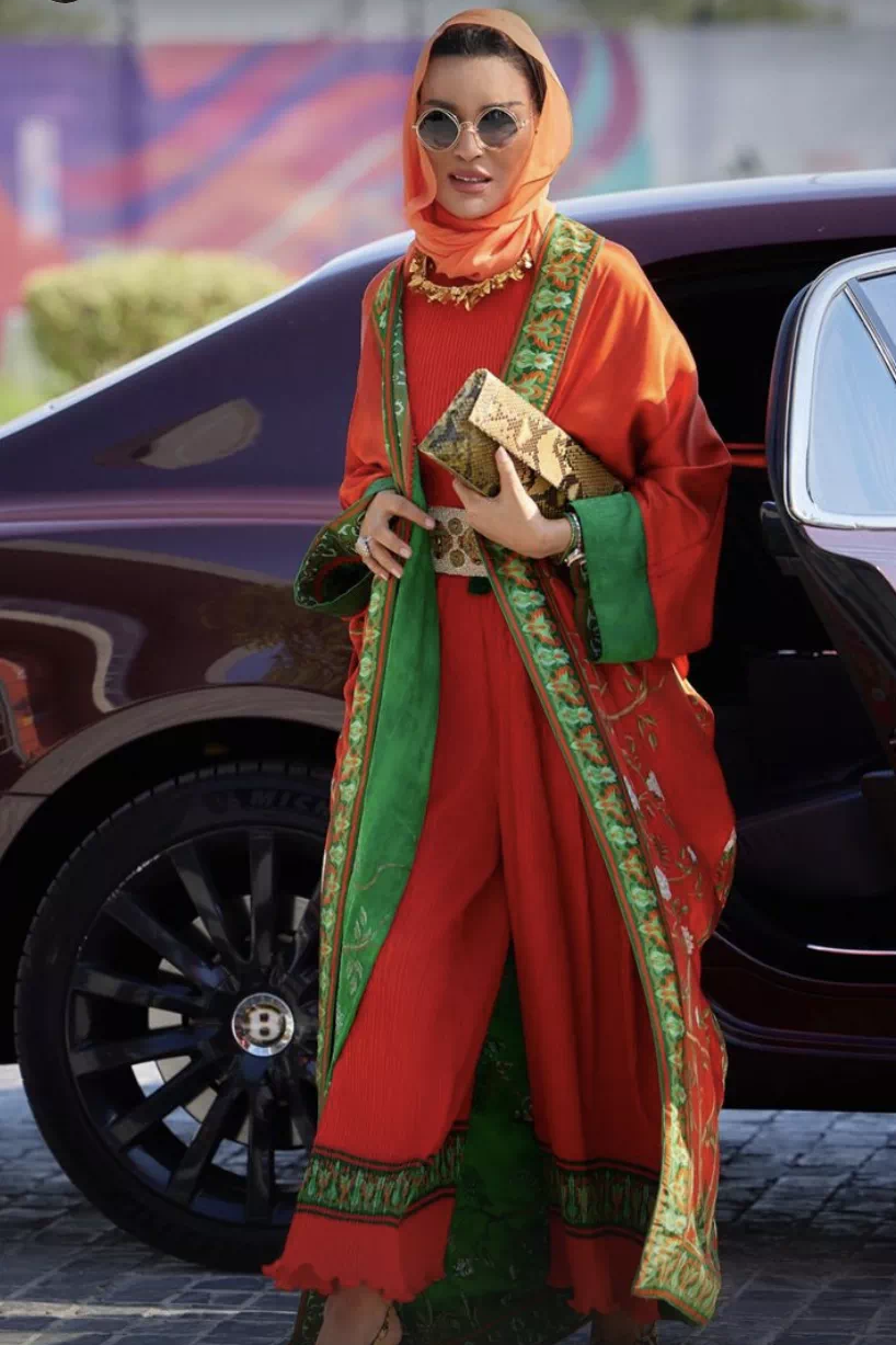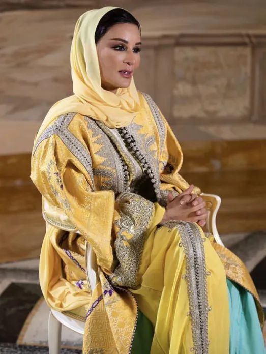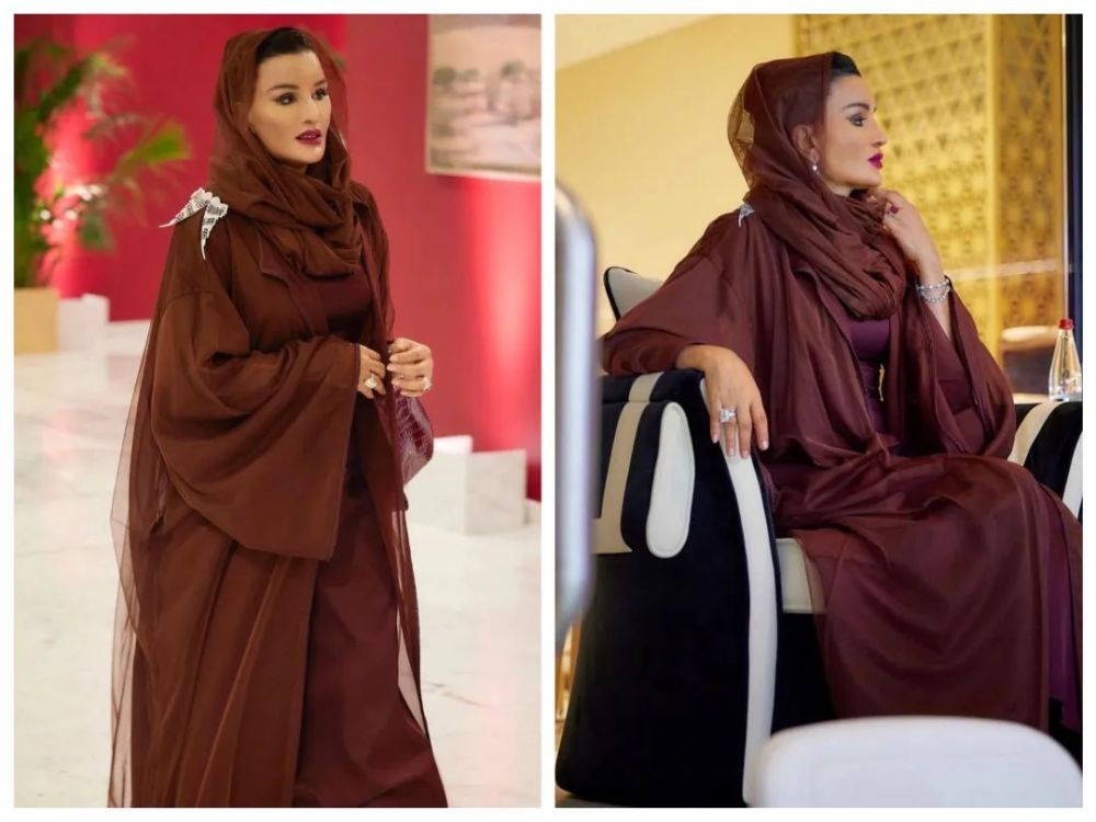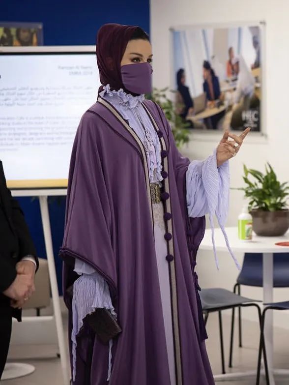 雖然寵愛高定,但是莫扎也并非只穿高定。為了更好地讓本土文化走出去,莫扎在世界杯期間還很頻繁地穿著阿拉伯特色的長(zhǎng)袍,色彩極其鮮艷,辨識(shí)度很高。
