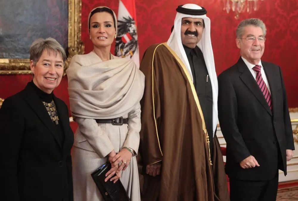 2013年,莫扎的兒子塔米姆繼位,自己與丈夫一起“光榮退休”,成了卡塔爾的太后與太上皇。雖然丈夫哈馬德一共娶了3位妻子,但莫扎始終是他最寵愛的。每次公開場(chǎng)合,哈馬德都會(huì)帶莫扎出席,有人甚至以為她是哈馬德.的正妻,足見莫扎的段位和魅力。
