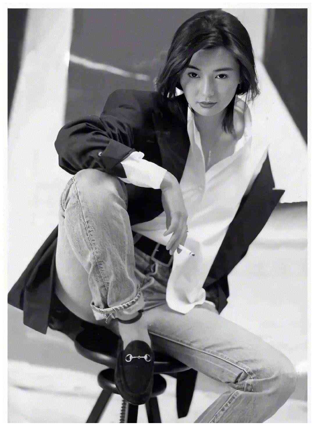 張曼玉的這套牛仔穿搭非常實用,短款牛仔外套搭配高腰牛仔褲,提高腰線的同時也拉長了腿部線條,顯高又顯瘦。