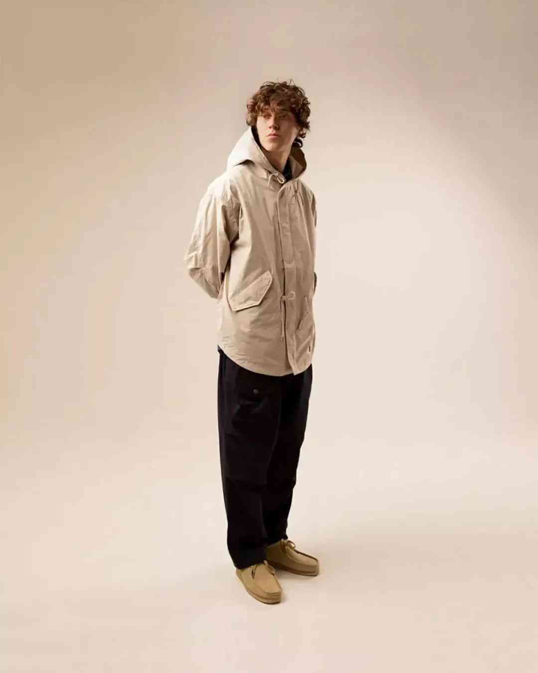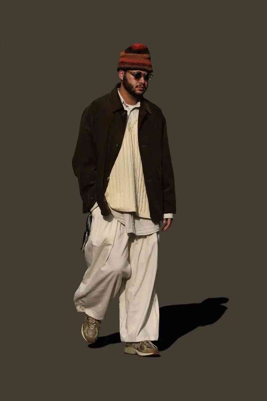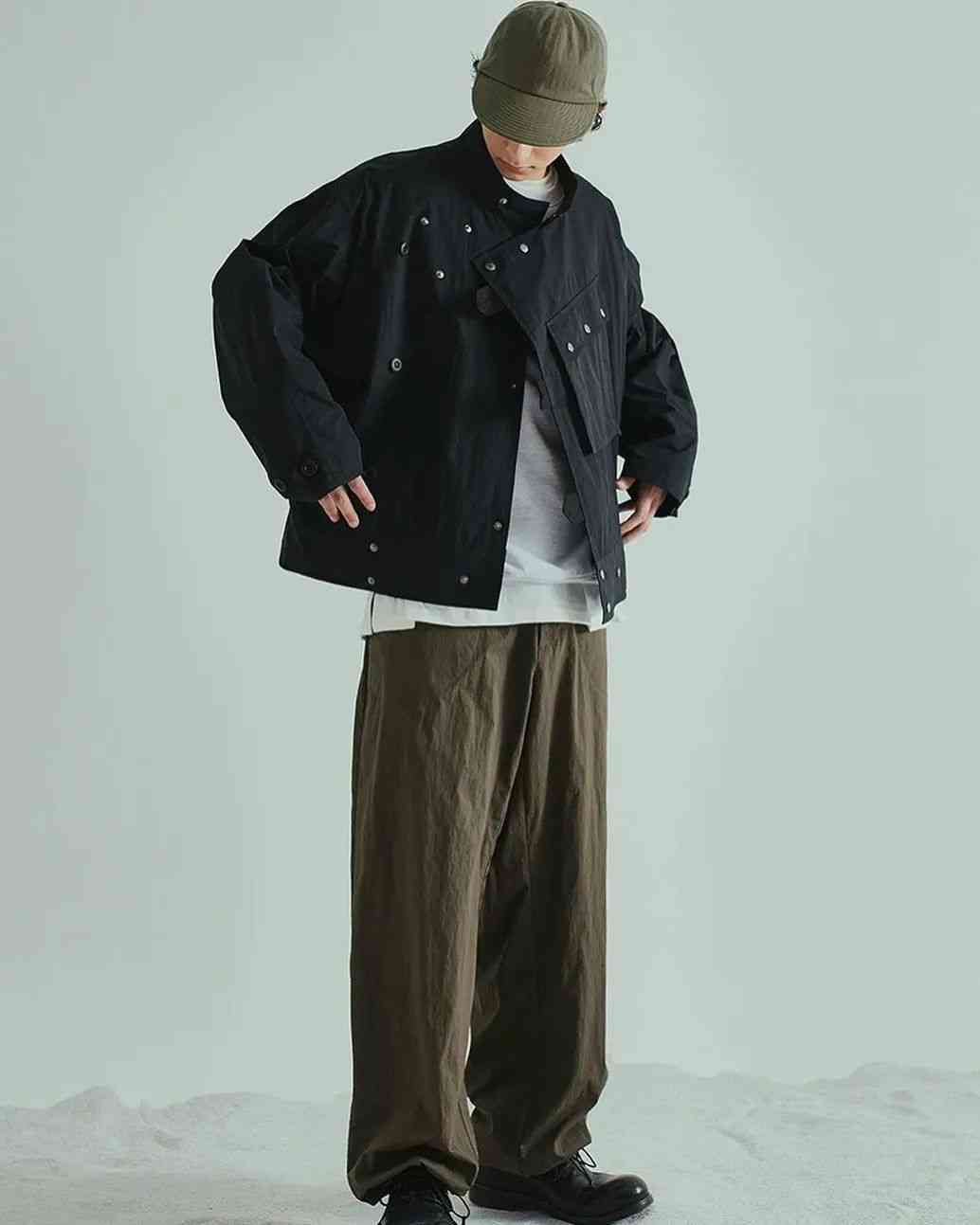 盡管都是扎根在復古軍事、戶外服飾的土壤當中,但 EASTLOGUE 與 Nigel Cabourn、Engineered Garments 等一眾軍工裝品牌又有所不同。不太嚴謹?shù)孛枋?,這種感覺就好像是 EASTLOGUE 從復古軍事、戶外單品的檔案中提取個別元素,再將它融入更具功能性的,原創(chuàng)的現(xiàn)代服飾廓形當中。而后者則并沒有跳出那一個框架。