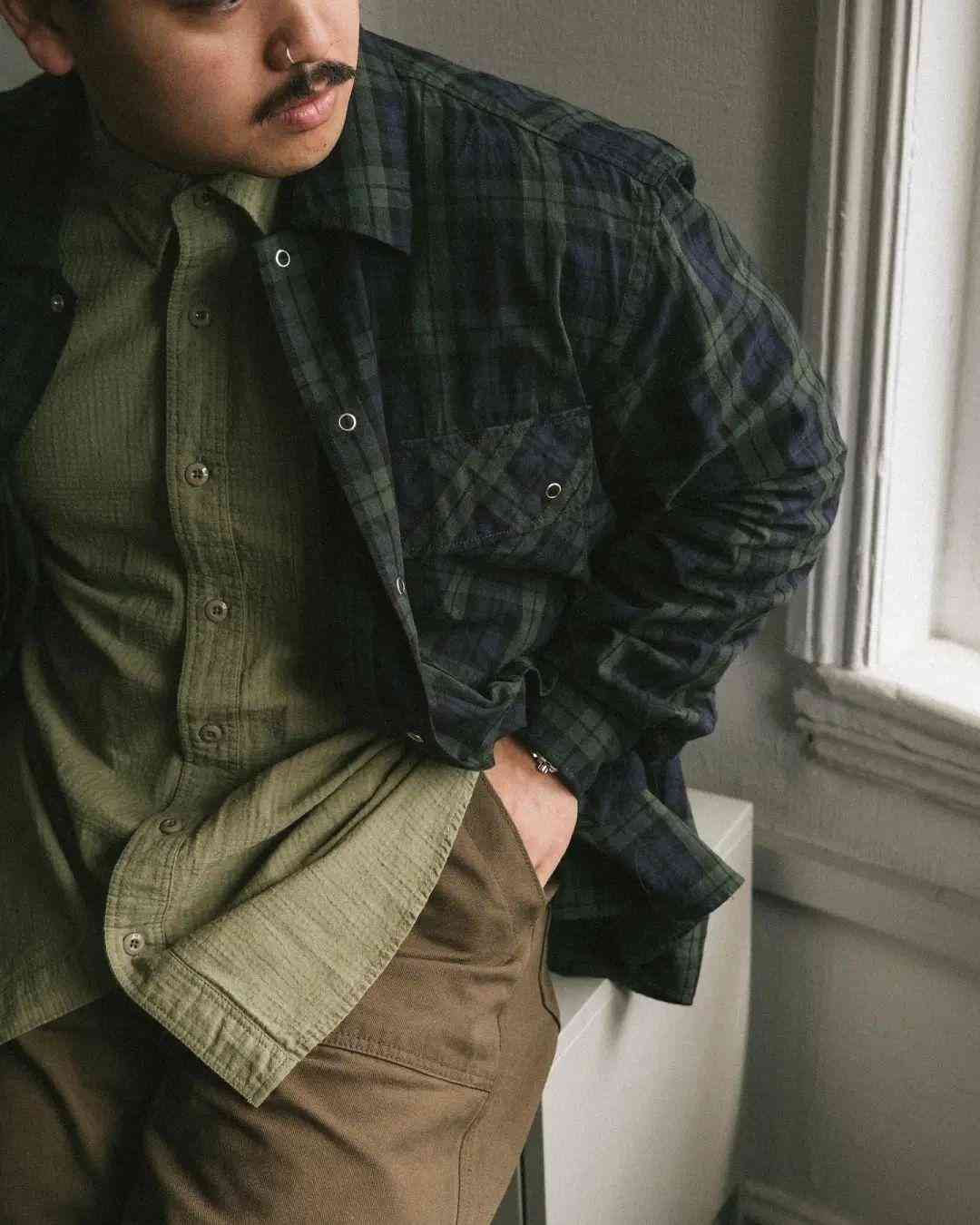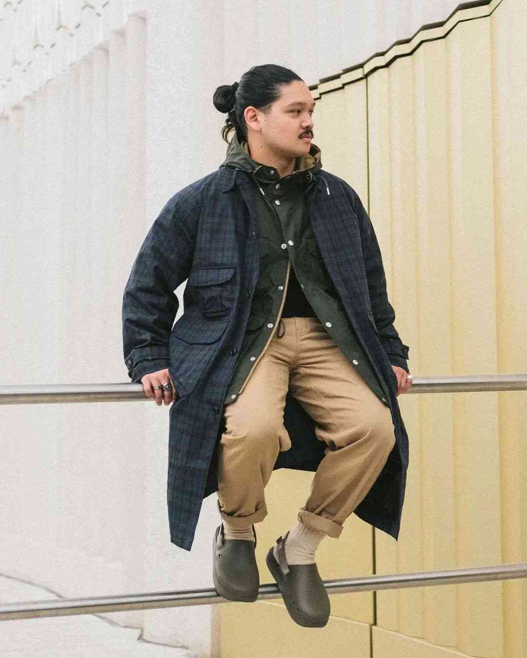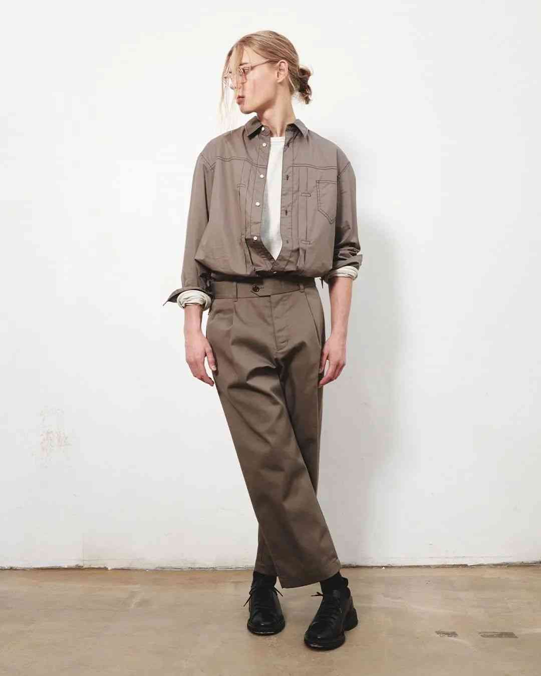 盡管都是扎根在復古軍事、戶外服飾的土壤當中,但 EASTLOGUE 與 Nigel Cabourn、Engineered Garments 等一眾軍工裝品牌又有所不同。不太嚴謹?shù)孛枋?,這種感覺就好像是 EASTLOGUE 從復古軍事、戶外單品的檔案中提取個別元素,再將它融入更具功能性的,原創(chuàng)的現(xiàn)代服飾廓形當中。而后者則并沒有跳出那一個框架。