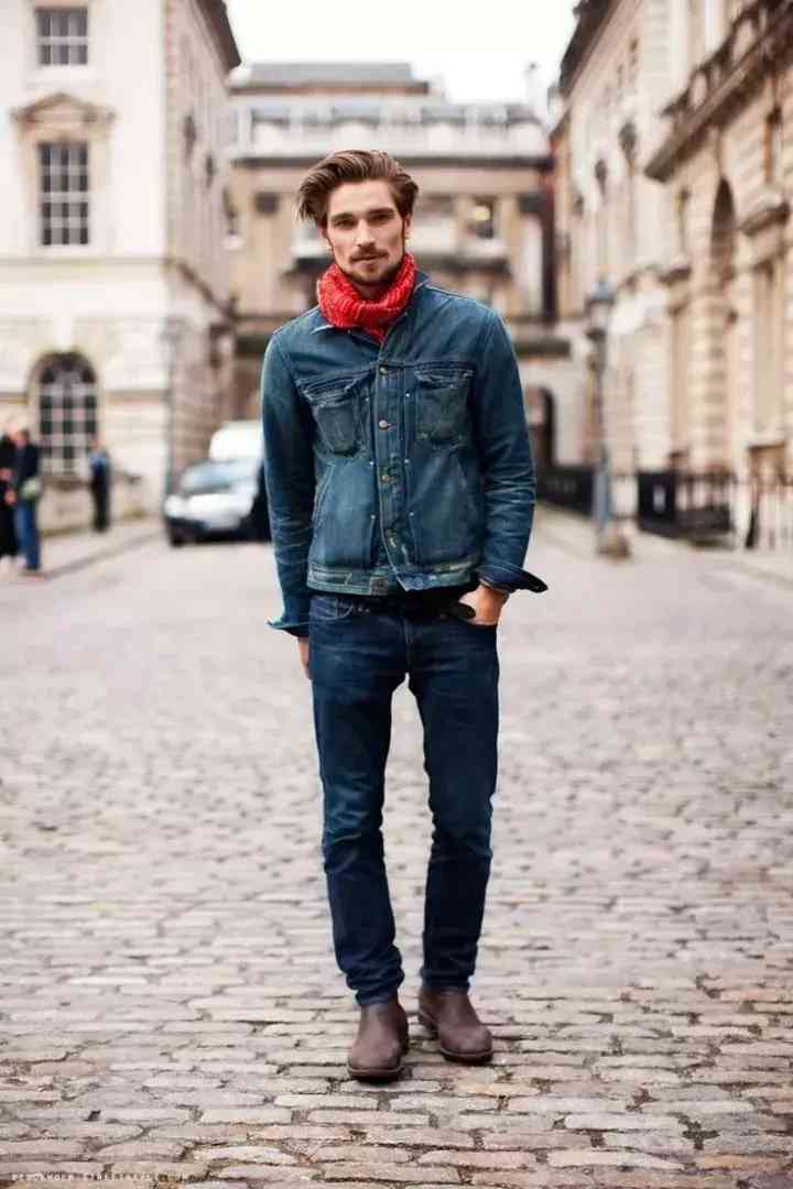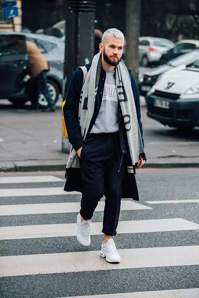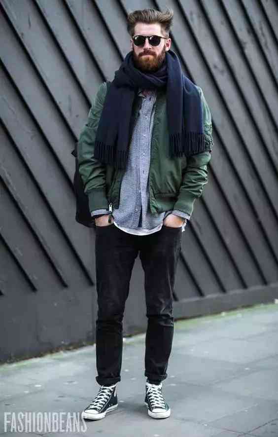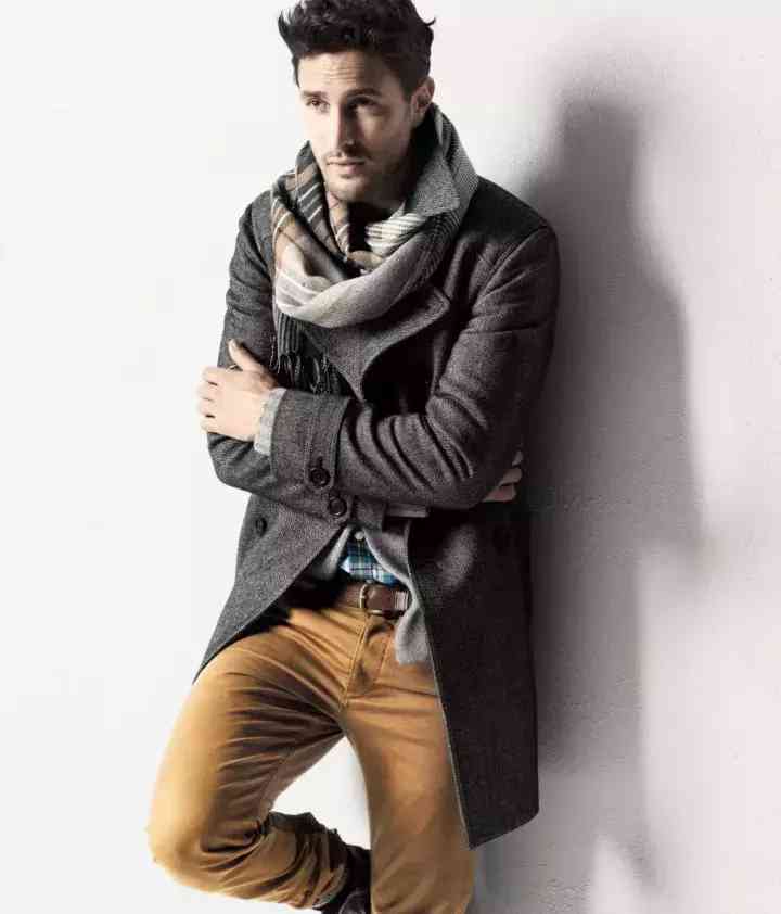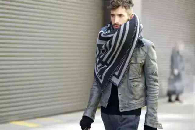 男士戴圍巾都是以簡單簡約為主,簡單輕松地將圍巾繞一圈的打法同樣適合大部分的服裝做造型,而選擇顏色上突出的圍巾會讓造型更搶眼。