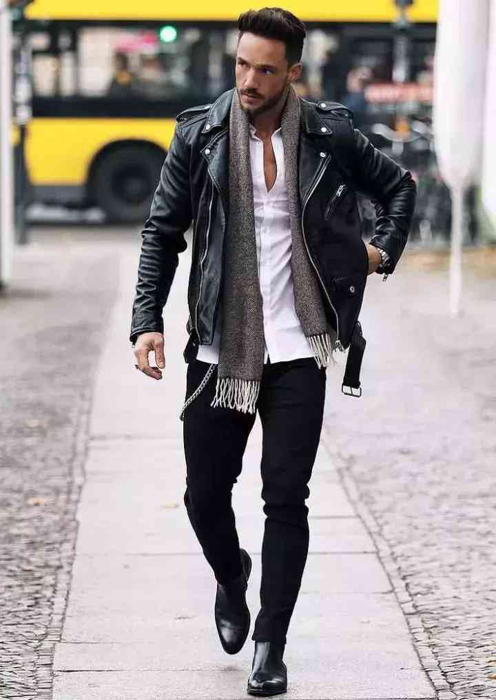 要數(shù)最時尚的圍巾打法就一定是寬松三角巾,以毛氈材質的圍巾搭配皮衣或夾克便能散發(fā)高街Syle感。