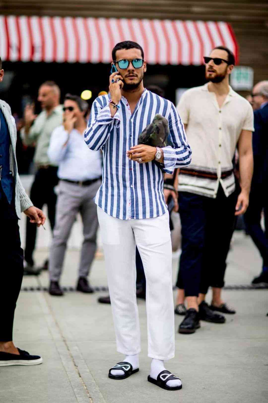 規(guī)整的豎型條紋元素,縱向拉伸視覺更顯高,非常適合個子不高的男性;條紋襯衫還能演繹出不同的格調,單穿內搭都好看。
